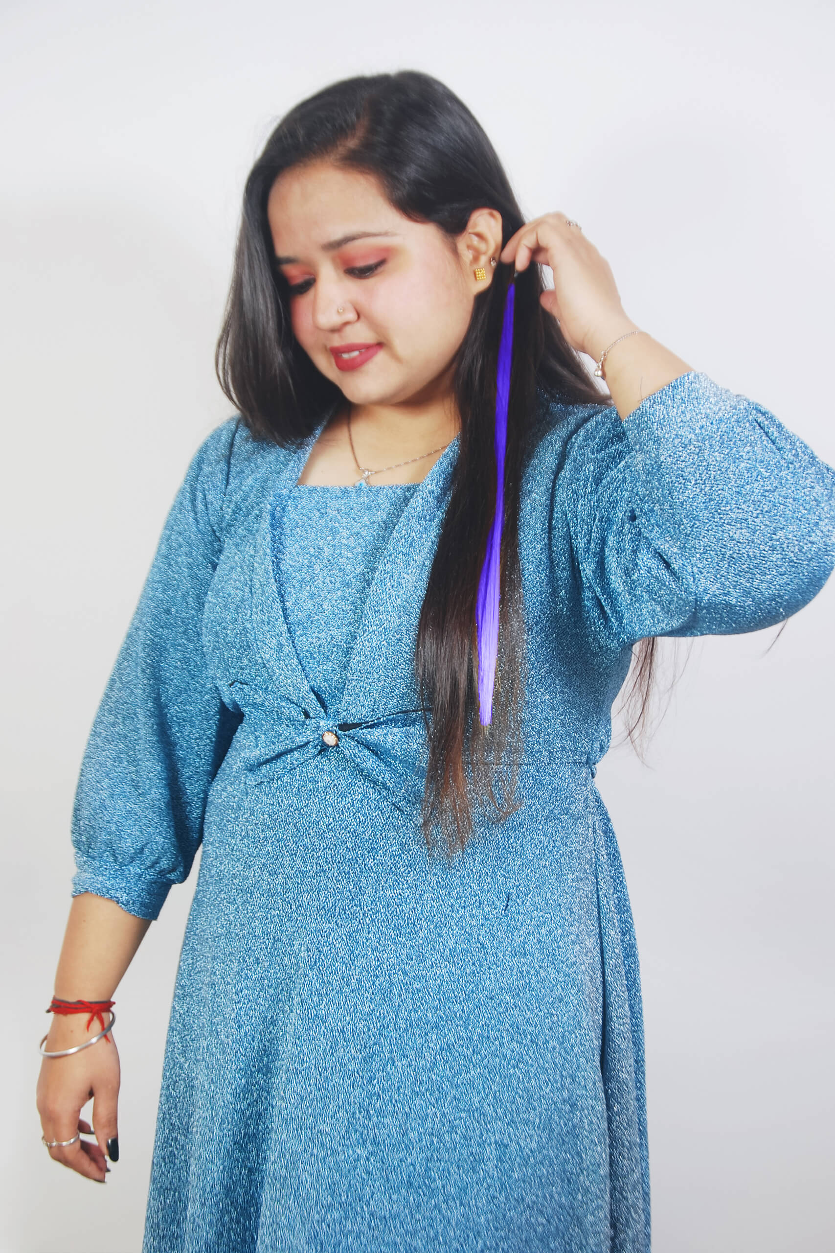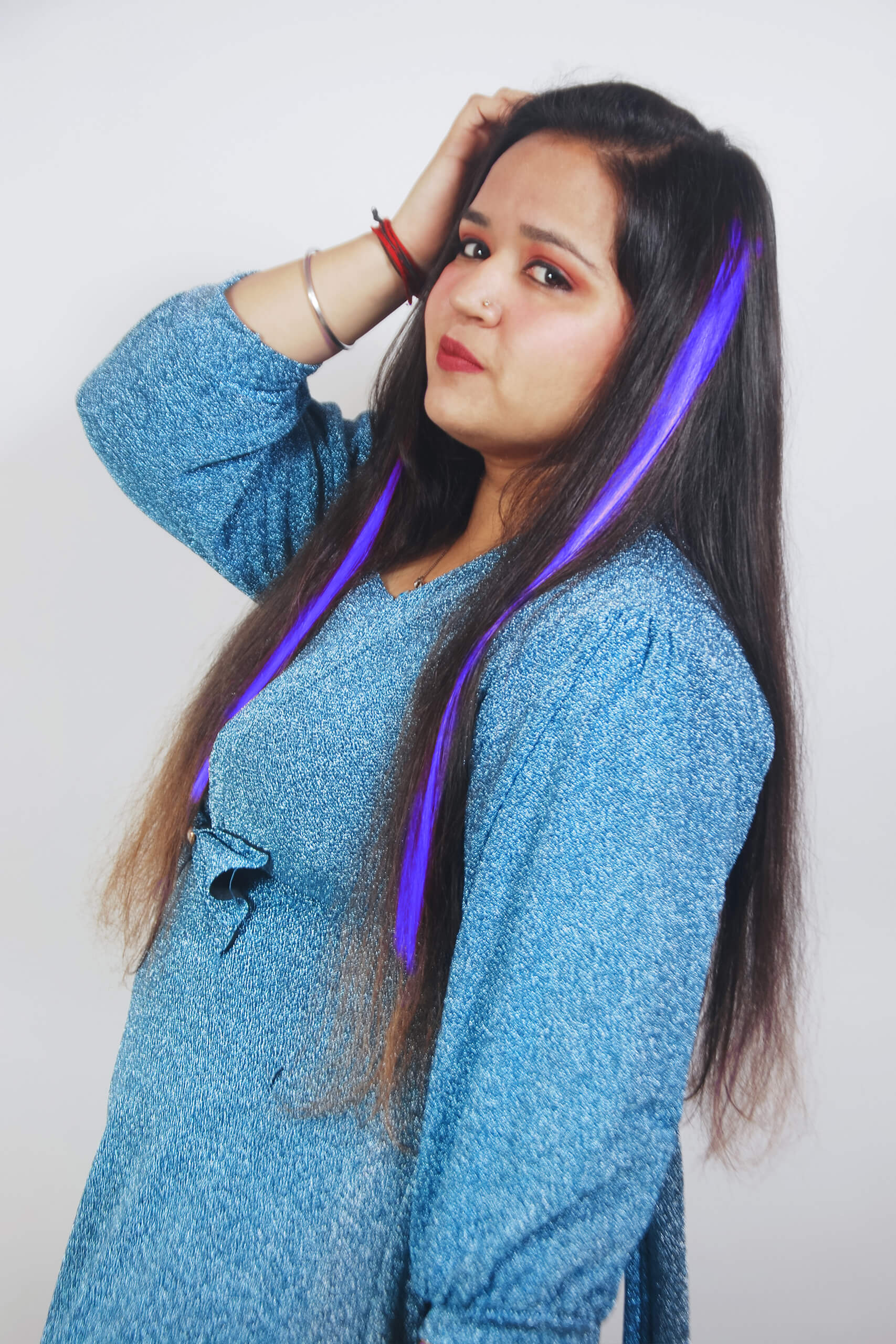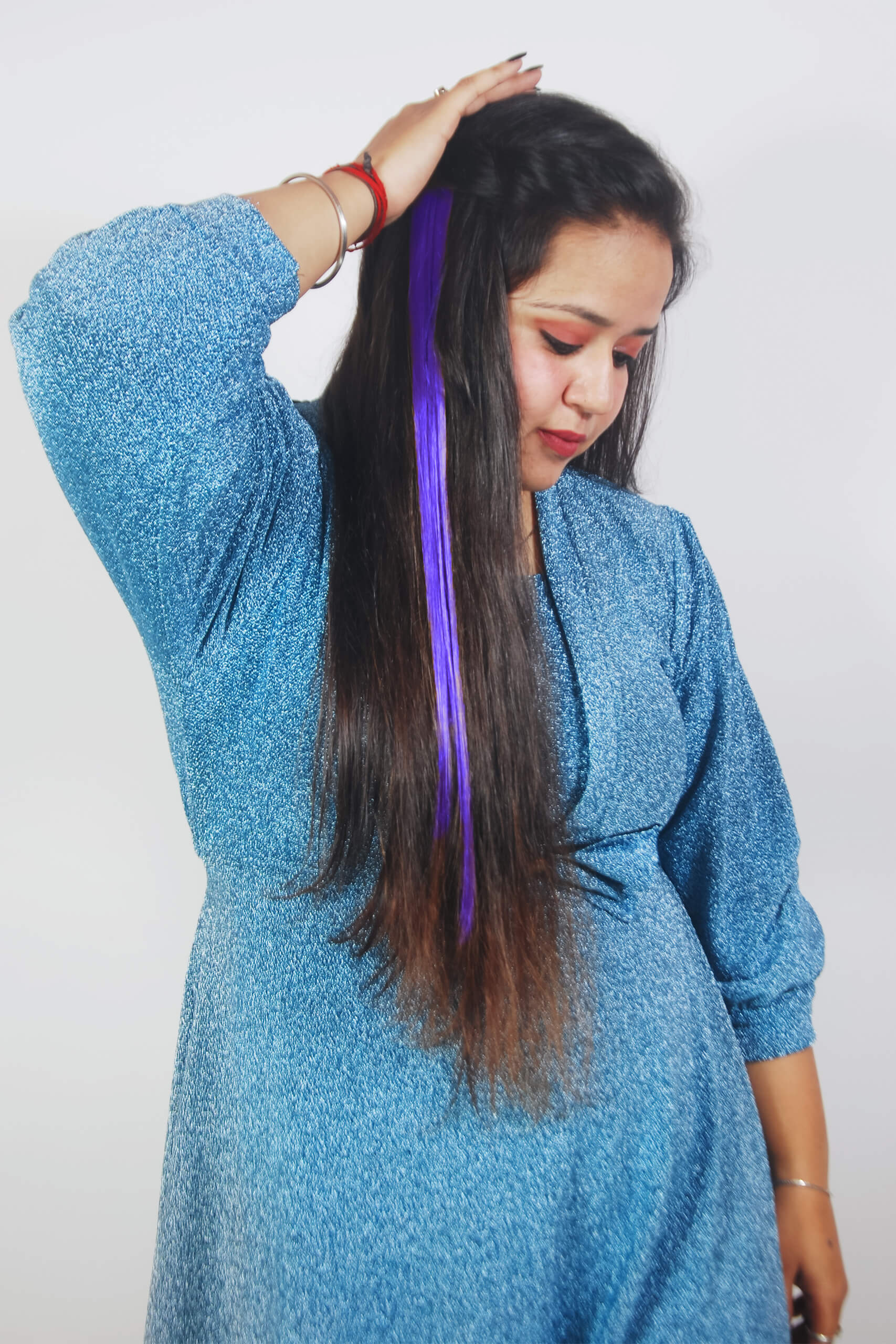 Change your hair look with ease using Blue Streaks Clip-In Highlights. These bright streaks are made from synthetic hair and are super easy to clip on. Enjoy a quick and damage-free way to give your style a boost without the salon hassle!