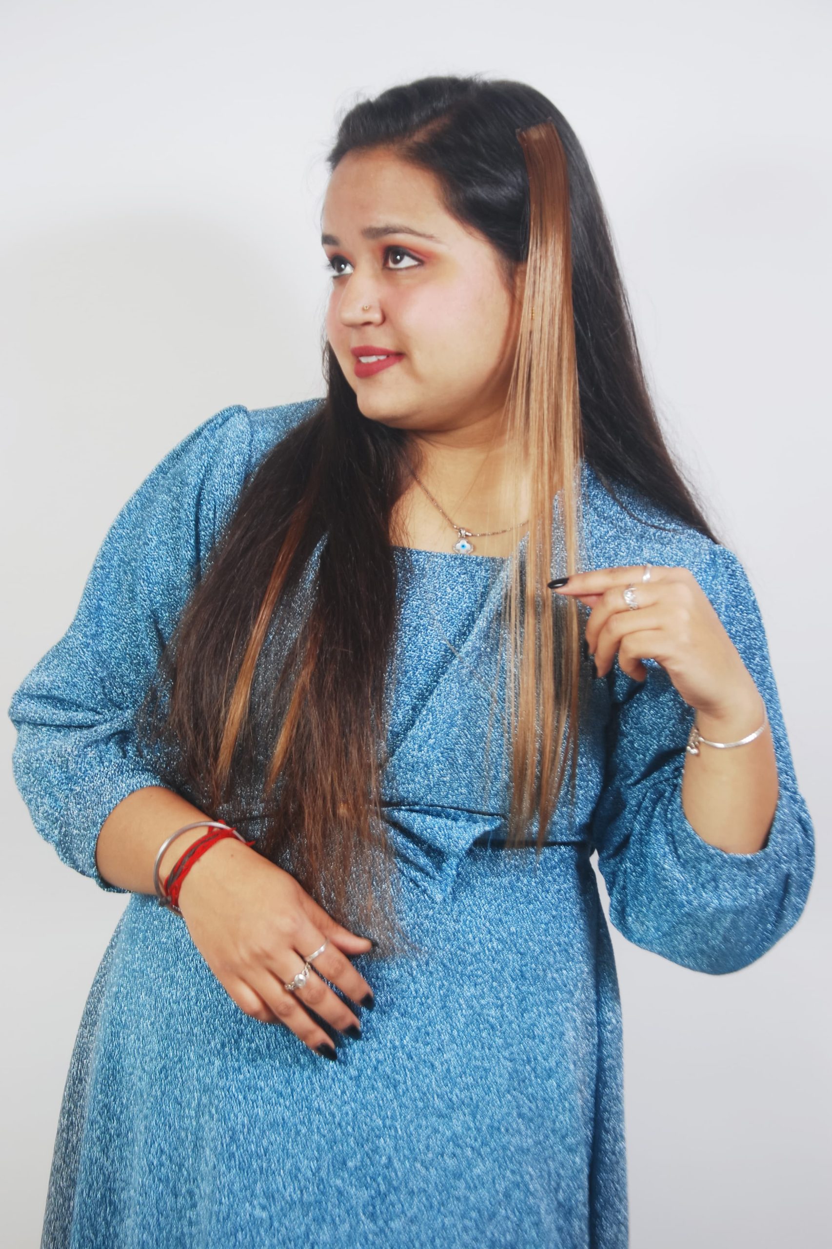Elevate your everyday look with Brown Streaks Clip-In Highlights. Created from high-quality synthetic fibers, these highlights seamlessly fuse, mirroring the richness of natural brown shades. Experience a salon-worthy transformation without the permanence of hair dye. The quick and secure clip application ensures a smooth style upgrade, enabling you to enjoy a refreshed and sophisticated appearance in no time.