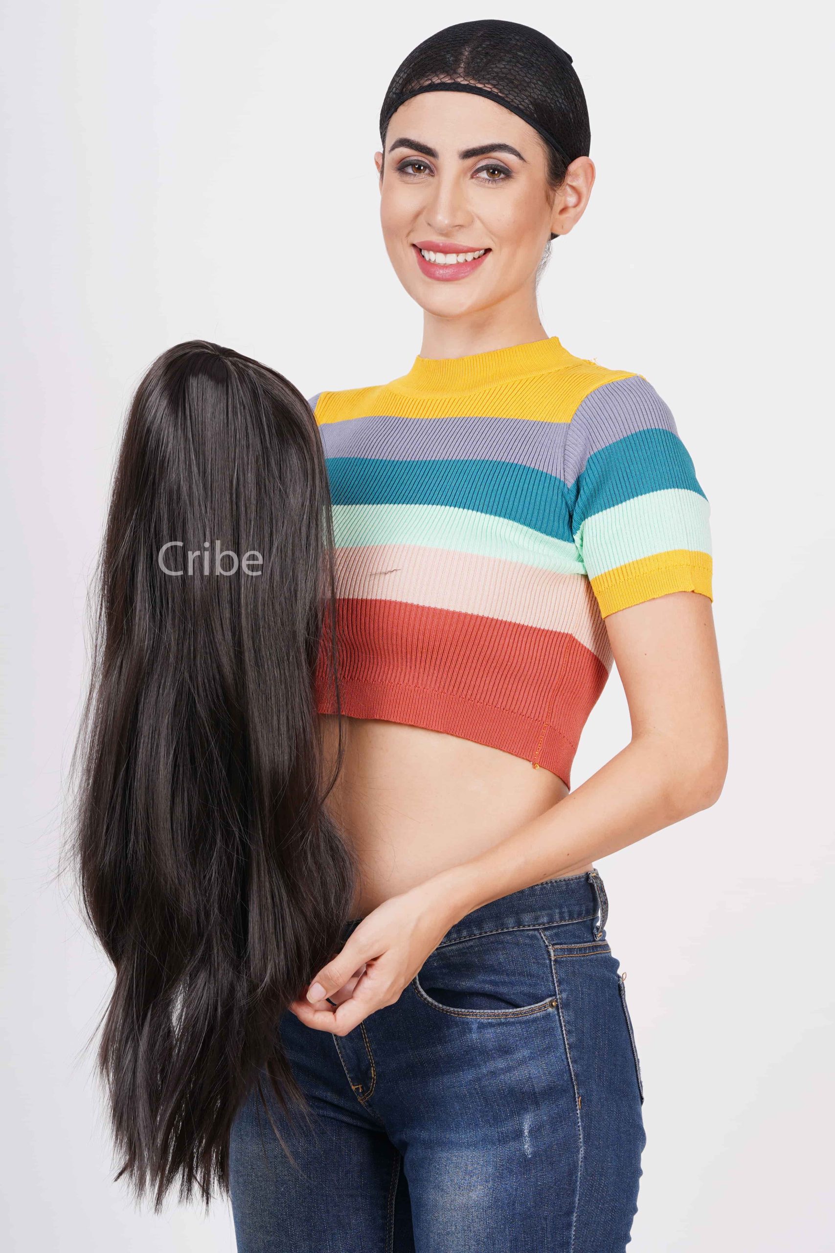 Get a fresh new look with the cribe long straight hair wig. Whether you like classic black or rich brown, this top-quality wig gives you super smooth, straight hair that looks totally real. It’s made from strong synthetic fibers that can handle heat up to 150-180 degrees, so it’ll last and feel comfy. Plus, it has an adjustable cap for a secure fit.